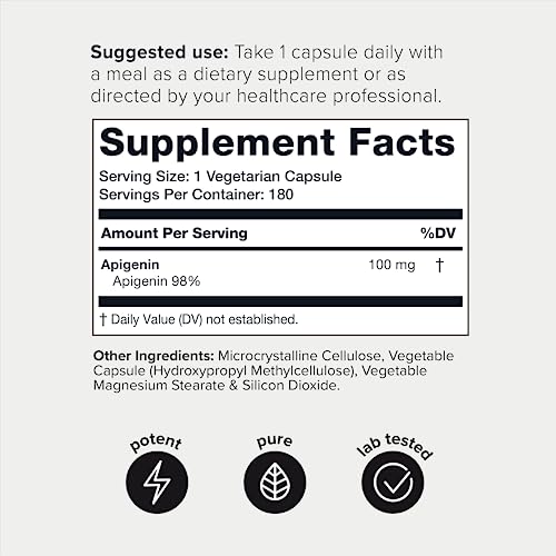 - The Highly Purified Form of Apigenin - Our apigenin contains an unprecedented purity level of 98%+. Higher purity means more of the active compounds in each serving that give apigenin its powerful properties.