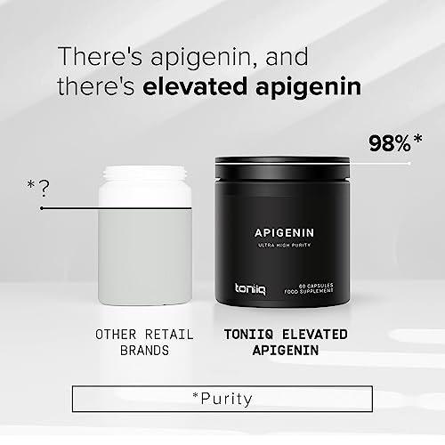 - Highly Purified and Highly Bioavailable - Apigenin has amazing health benefits, but purity and absorption have always been a major challenge; something most other chamomile extract and apigenin 50mg supplements don’t provide as it requires an extra step (and expense) in the manufacturing process. At a 98%+ purity level, Toniiq Apigenin provides some of the purest, most potent apigenin available.